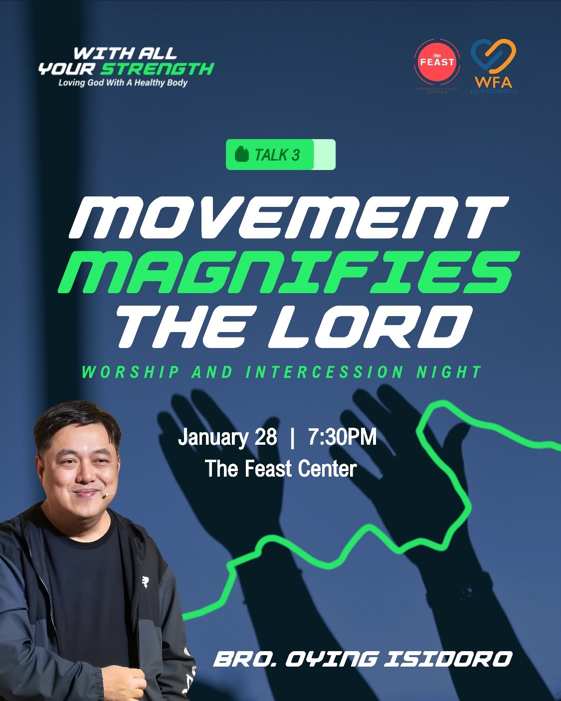 Are you tired… but can’t explain why? Busy all week, yet your body feels weak and heavy? This Wednesday at The Feast CenterTalk 3: Movement Magnifies the LordIn this powerful talk, discover why God wants you strong, how movement is spiritual, and how caring for your body can become a daily act of worship. Come and bring […]