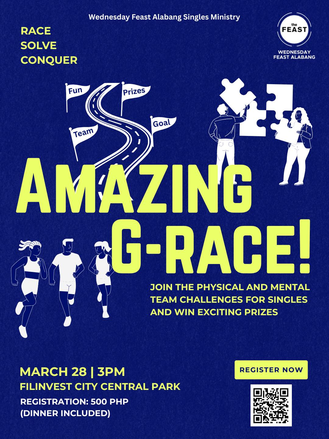 ATTENTION: MGA SINGLE! Kung ikaw ay: Single by choice Single by chance Single kasi “Lord, ikaw na po bahala” Then this is your sign! RACE SOLVE CONQUERJoin the 𝑨𝒎𝒂𝒛𝒊𝒏𝒈 𝑮-𝑹𝒂𝒄𝒆 — a fun challenge for singles full of games, puzzles, teamwork, and exciting prizes!Malay mo… hindi lang puzzle ang ma-solve mo. Filinvest City Central Park March 28 | 3PMRegitration fee: 500 PhP*𝘍𝘙𝘌𝘌 𝘋𝘐𝘕𝘕𝘌𝘙𝐒𝐜𝐚𝐧 𝐐𝐑 𝐜𝐨𝐝𝐞 […]