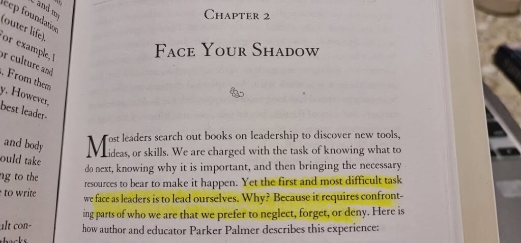 From Chapter Two: Face Your Shadows. It tells us that one of the greatest struggles that we have to face as leaders is to lead ourselves. According to Scazzero, our shadows are the most damaged but mostly hidden versions of who we are.